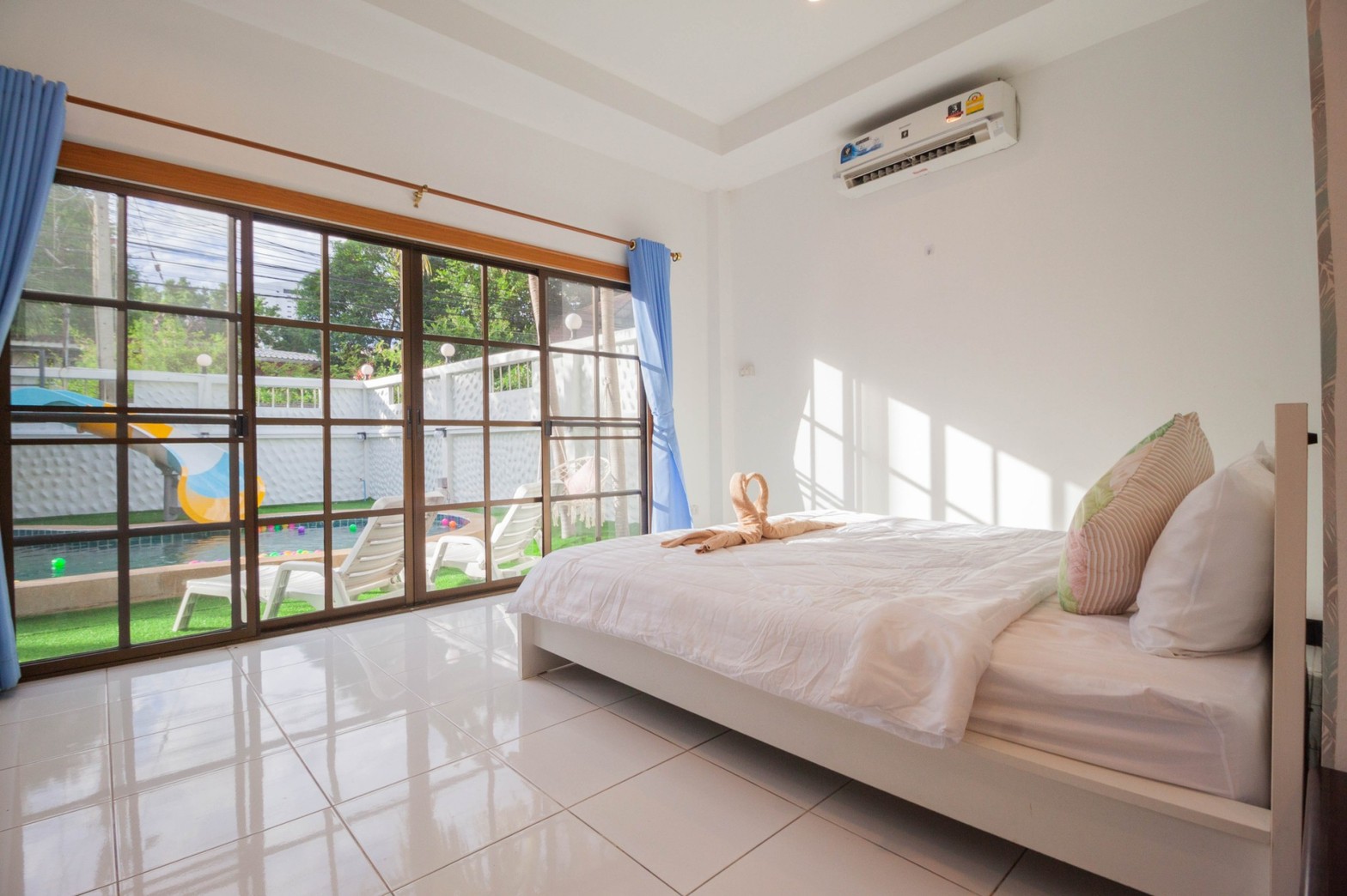 บ้าน Bamboo Beach เดินลงหาดได้ 100 เมตร หลังเล็ก อบอุ่น เหมาะกับครอบครัว แกงค์เพื่อนสนิท เดินสวยๆไปถ่ายรูปริมทะเล หรือจะตะลอนคาเฟ่ริมทะเลก็เก๋กู้ด ห้องนอนหลักมีพื้นที่กว้างขวาง เตียงเดียวขนาดใหญ่ มาพร้อมทีวี และเครื่องปรับอากาศ ที่มุมของห้องมีที่นั่งส่วนตัว พร้อมเครื่องปรับอากาศ ห้องนั่งเล่นมีชุดโซฟา ขนาดใหญ่และทีวี ถัดมาเป็นชุดโต๊ะทานอาหารสุดหรู ห้องครัวอันกว้างขวาง มีพื้นที่ใช้สอย มาพร้อมกับเครื่องใช้ไฟฟ้ามากมาย เช่น ตู้เย็น ไมโครเวฟ เตาอบ เตาไฟฟ้า พร้อมบริการสิ่งอำนวยความสะดวกอื่นๆ