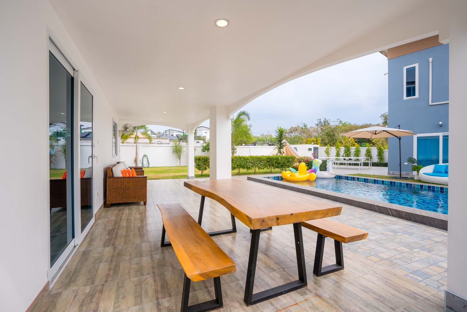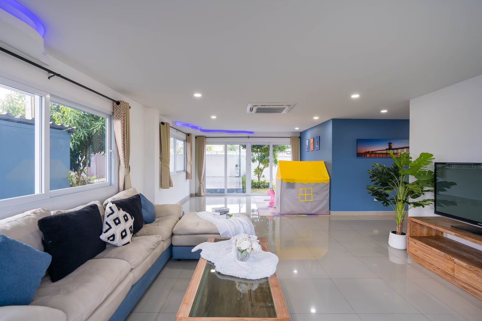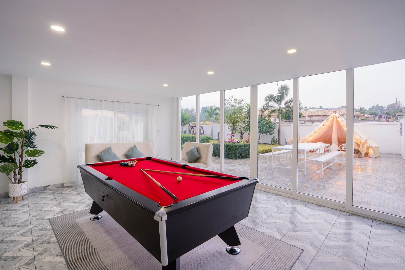 เมาเทน วิว พูล วิลล่า (Mountain View Pool Villa) เป็นที่พักสไตล์รีสอร์ท รายวันราคาถูก ในเขต พัทยา ชลบุรี ห่างจากสวนนงนุช เพียง 10.8 กม. อยู่ในแหล่งชุมชน น่าพักผ่อน เดินทางเข้า-ออก สะดวกใกล้ทางหลวงหมายเลข 1008 บ้าน Mountain View บ้านหลังใหญ่ บรรยากาศดีล้อมไปด้วยธรรมชาติและวิวภูเขา บริเวณบ้านมีเนื้อที่กว้างขวาง เงียบสงบและมีความเป็นส่วนตัว ห้องนอนหลักมีพื้นที่กว้างขวาง เตียงเดียวขนาดใหญ่ มาพร้อมทีวี และเครื่องปรับอากาศ ที่มุมของห้องมีที่นั่งส่วนตัว พร้อมเครื่องปรับอากาศ ห้องนั่งเล่นมีชุดโซฟา ขนาดใหญ่และทีวี ถัดมาเป็นชุดโต๊ะทานอาหารสุดหรู ห้องครัวอันกว้างขวาง มีพื้นที่ใช้สอย มาพร้อมกับเครื่องใช้ไฟฟ้ามากมาย เช่น ตู้เย็น ไมโครเวฟ เตาอบ เตาไฟฟ้า พร้อมบริการสิ่งอำนวยความสะดวกอื่นๆ