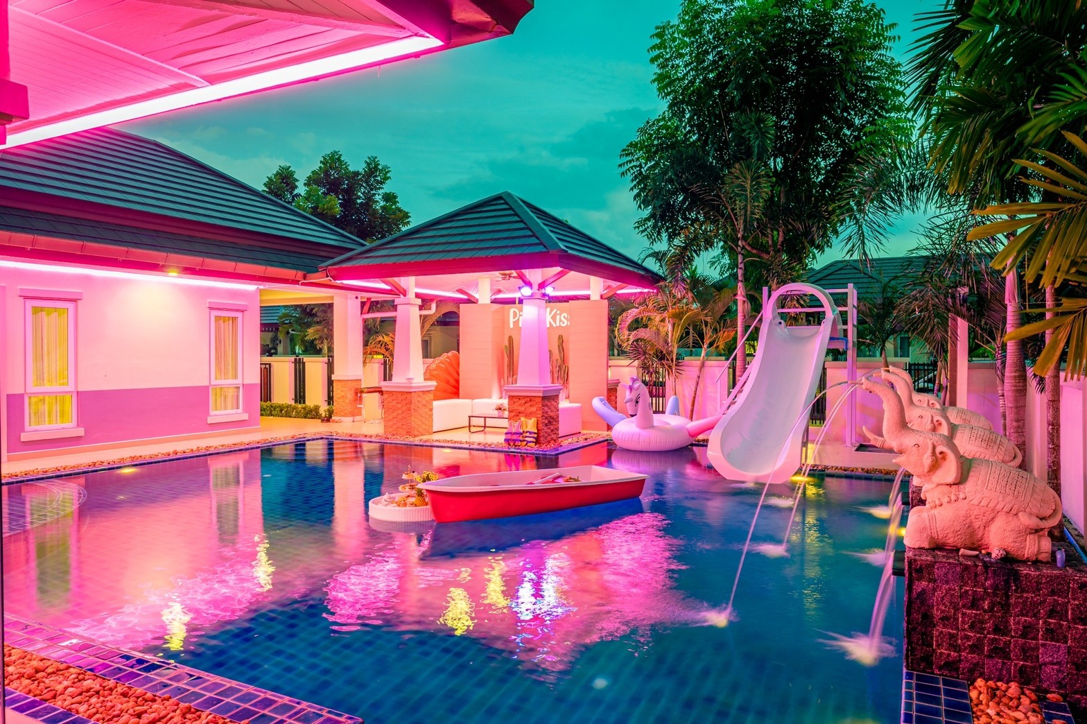 พิงค์คิส พูลวิลล่า (Pink Kiss Pool Villa) เป็นที่พักสไตล์บ้านสระว่ายน้ำส่วนตัว รายวันราคาถูก ในเขต สัตหีบ ชลบุรี ห่างจากเลเจนด์ สยาม พัทยา เพียง 7.1 กม. อยู่ในแหล่งชุมชน น่าพักผ่อน เดินทางเข้า-ออก สะดวกใกล้ทางหลวงหมายเลข 1008 บ้านพัก ราคาถูกแห่งนี้ มี 1 หลัง เป็น 3 ห้องนอน 2 ห้องน้ำ ทุกห้องได้ตกแต่งได้อย่างลงตัว สิ่งอำนวยความสะดวกในห้องพัก ได้แก่ เครื่องปรับอากาศ น้ำดื่ม 2 ขวด และเครื่องทำน้ำอุ่น สิ่งอำนวยความสะดวกประกอบด้วย บริการ ที่จอดรถ สระว่ายน้ำ สไลเดอร์ ห่วงยางแฟนซี คาราโอเกะ ร้องผ่านยูทูป โต๊ะพูล ห้องครัว พร้อม อุปกรณ์ทำครัว เตาปิ้งย่าง Wi-Fi ฟรีในทุกพื้นที่ และบริการอื่นๆจากที่พัก