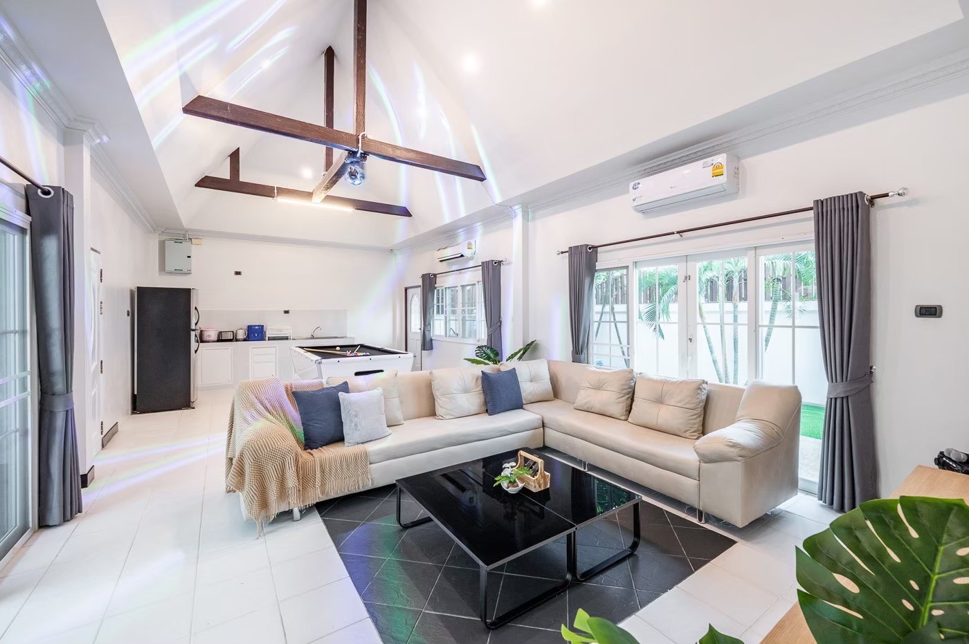 Sherlyn Pool Villa เป็นที่พักสไตล์พูลวิลล่า รายวันราคาถูก ในเขต พัทยา ชลบุรี ห่างจากสตรีทฟู้ดหาดจอมเทียน เพียง 1 กม. อยู่ในตัวเมือง น่าพักผ่อน เดินทางเข้า-ออก สะดวกใกล้ทางหลวงหมายเลข 3 บ้านพักราคาถูกแห่งนี้ มี 1 หลัง เป็น 3 ห้องนอน 3 ห้องน้ำ ทุกห้องได้ตกแต่งได้อย่างลงตัว สิ่งอำนวยความสะดวกในห้องพัก ได้แก่ เครื่องปรับอากาศ น้ำดื่ม 2 ขวด และเครื่องทำน้ำอุ่น สิ่งอำนวยความสะดวกประกอบด้วย บริการ ที่จอดรถ สระว่ายน้ำ สไลเดอร์ ห่วงยางแฟนซี คาราโอเกะ ร้องผ่านยูทูป โต๊ะพูล ห้องครัว พร้อม อุปกรณ์ทำครัว เตาปิ้งย่าง Wi-Fi ฟรีในทุกพื้นที่ และบริการอื่นๆจากที่พัก