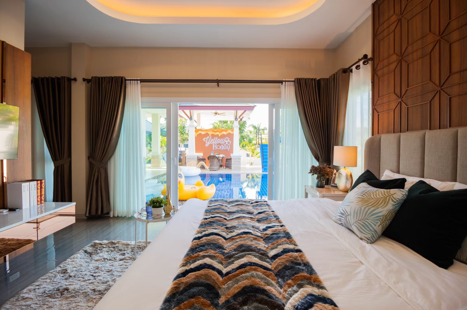 เยลโล ฮันนี่ พูล วิลล่า (Yellow Honey Pool Villa) เป็นที่พักสไตล์พูลวิลล่า รายวันราคาถูก ในเขต สัตหีบ ชลบุรี ห่างจากเลเจนด์ สยาม พัทยา เพียง 7.1 กม. อยู่ในแหล่งชุมชน น่าพักผ่อน เดินทางเข้า-ออก สะดวกใกล้ทางหลวงหมายเลข 1008 บ้านพักราคาถูกแห่งนี้ มี 1 หลัง เป็น 4 ห้องนอน 2 ห้องน้ำ ทุกห้องได้ตกแต่งได้อย่างลงตัว สิ่งอำนวยความสะดวกในห้องพัก ได้แก่ เครื่องปรับอากาศ น้ำดื่ม 2 ขวด และเครื่องทำน้ำอุ่น สิ่งอำนวยความสะดวกประกอบด้วย บริการ ที่จอดรถ สระว่ายน้ำ สไลเดอร์ ห่วงยางแฟนซี คาราโอเกะ ร้องผ่านยูทูป โต๊ะพูล ห้องครัว พร้อม อุปกรณ์ทำครัว เตาปิ้งย่าง Wi-Fi ฟรีในทุกพื้นที่ และบริการอื่นๆจากที่พัก